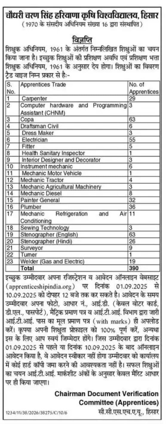 HAU Hisar Apprentice Vacancy 2025 Notification, Eligibility Details Apply Online Form September 3, 2025 by admin HAU Hisar Apprentice Vacancy 2025: